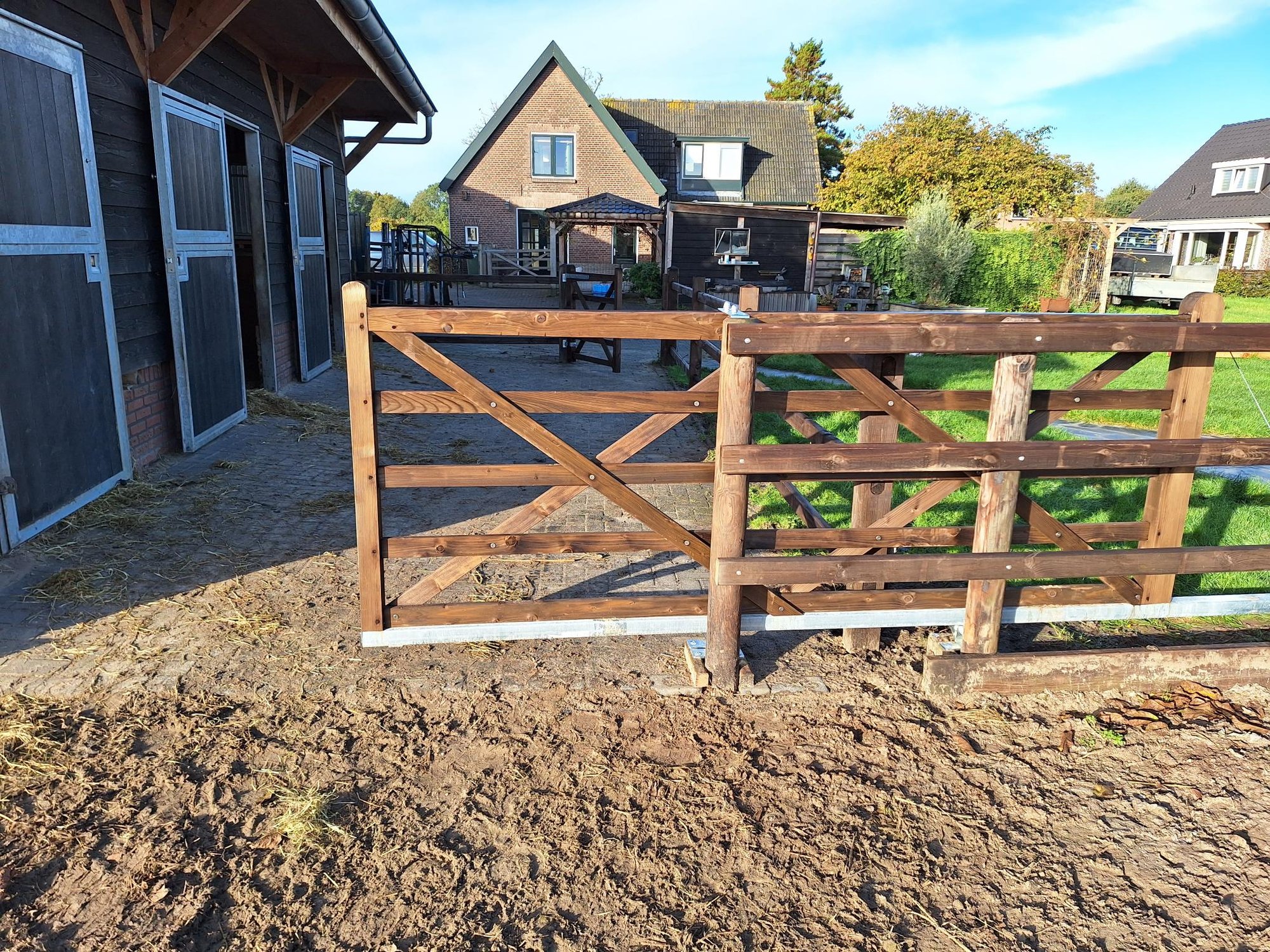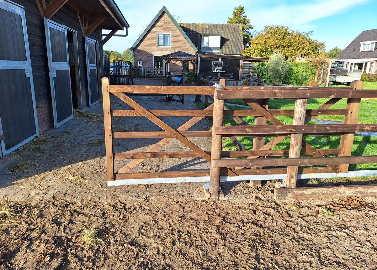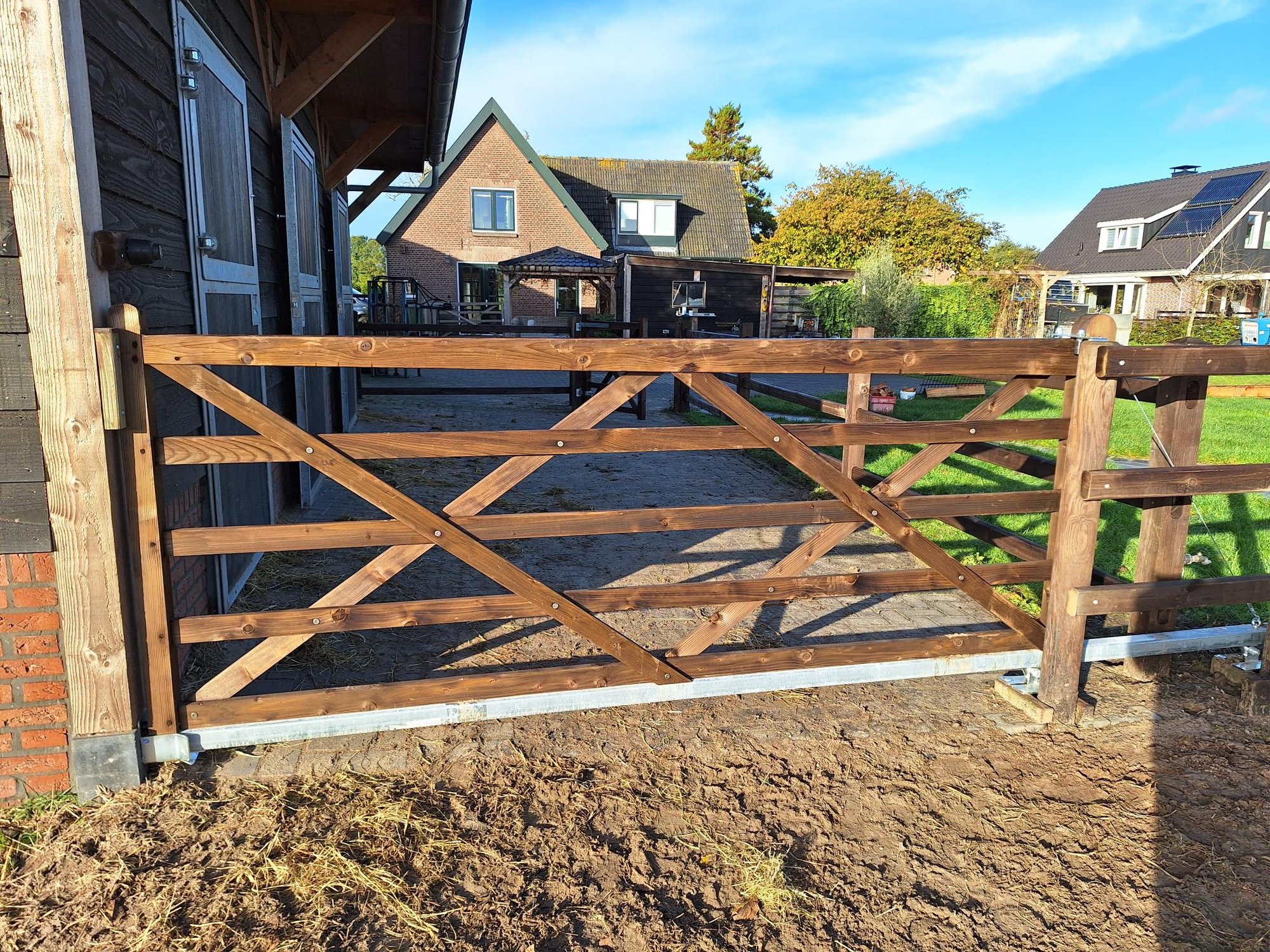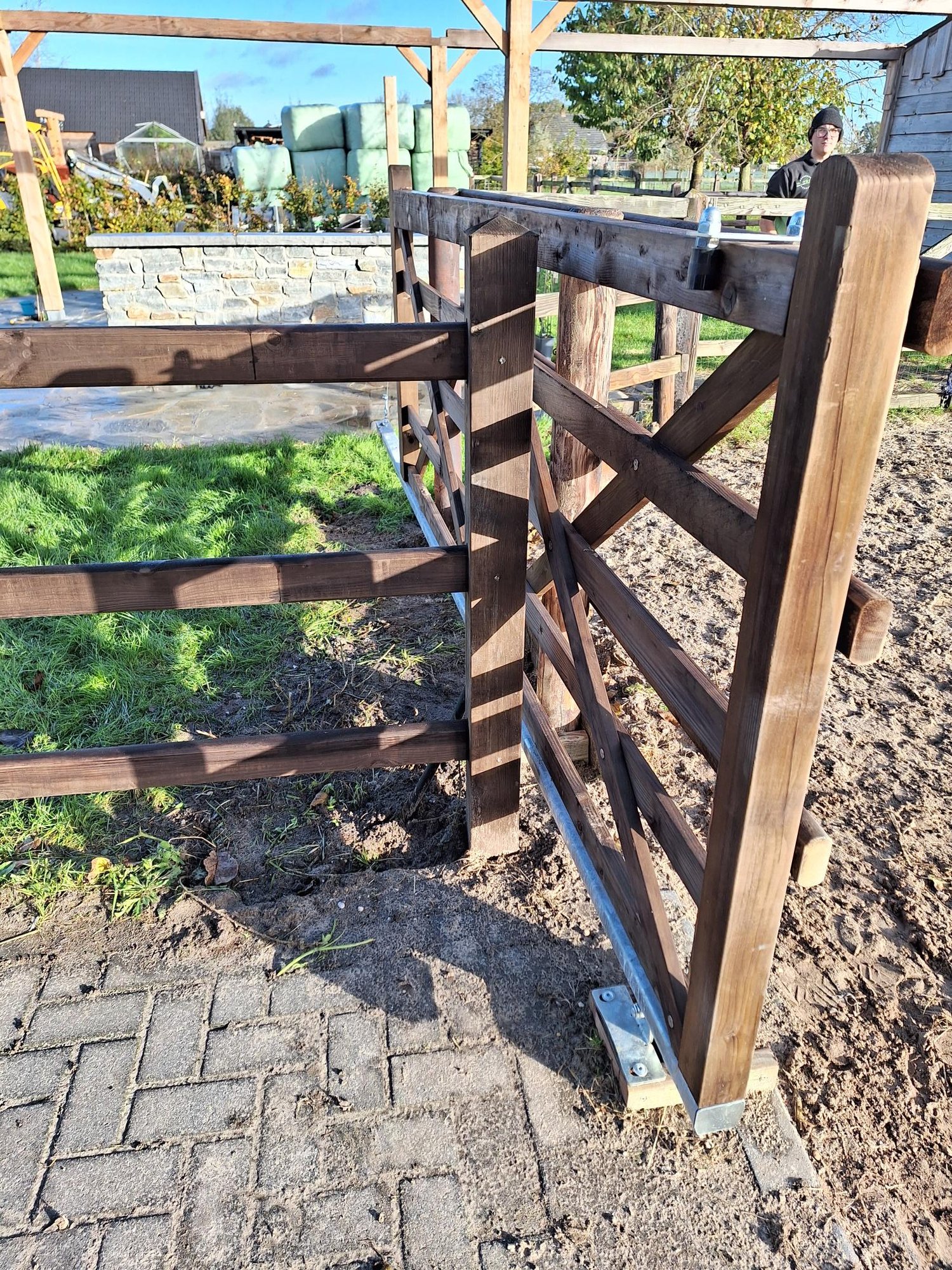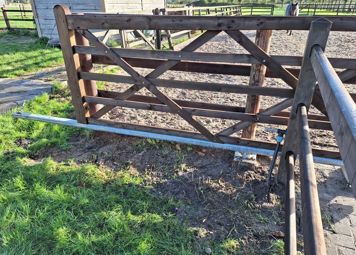 Normalerweise werden Weidetore fast immer als Drehtore ausgeführt, was oft nicht ideal ist, wenn Sie mit einem Pferd hineingehen. Deshalb haben wir ein englisches Tor als freitragendes Schiebetor entwickelt. Dies ist besonders praktisch für Paddocks, Reitplätze und mehr. Es muss jedoch Platz vorhanden sein, um das Tor zu öffnen. Der große Vorteil ist, dass dieses Schiebetor an den bestehenden Zaunpfosten montiert werden kann, wodurch keine separaten schweren Torpfosten erforderlich sind. Für ein Pre Shield English Gate mit einer Breite von 3 Metern beträgt der Aufpreis normalerweise 280 € inklusive Montage. Als Einführungsangebot bieten wir dieses System jetzt komplett montiert für 870 € anstatt 950 € an, einschließlich eines 3 Meter langen Tors, Schiene und mehr, sofern es an einem neuen Zaun angebracht ist.